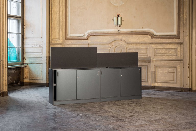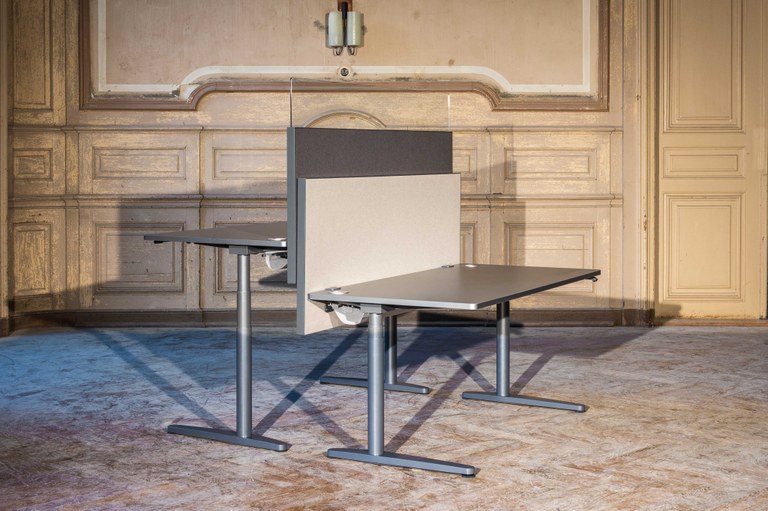 Aufsatz- oder Hintertischwände, hochschallabsorbierend, in verschiedenen Abmessungen und Formen, Oberflächen, Bezüge gem. Herstellerkollektion