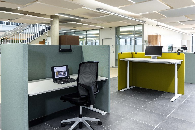 Stellwände, hochschallabsorbierend, in verschiedenen Abmessungen und Formen, Oberflächen, Bezüge gem. Herstellerkollektion
