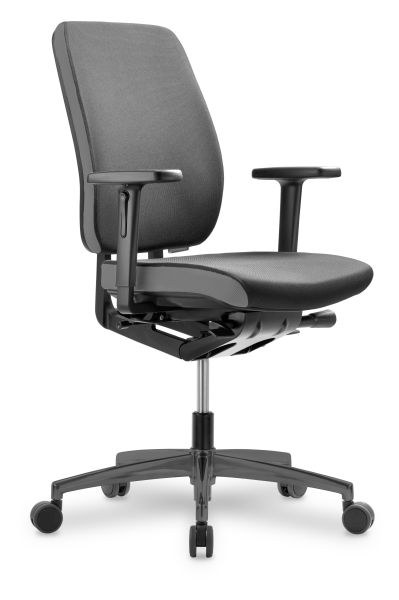 Bürodrehstuhl mittelhoch Sitz und Rücken gepolstert oder mit Netz, Synchronmechanik, Bezugstoff gemäß Herstellerkollektion, Funktionen: Sitztiefen-, Sitzneige-, und Lordosenverstellung, 4D-Armlehnen: breiten-, höhen-, tiefenverstellbar und schwenkbar, optional mit Kopfstütze – Versandart: zerlegt im Karton