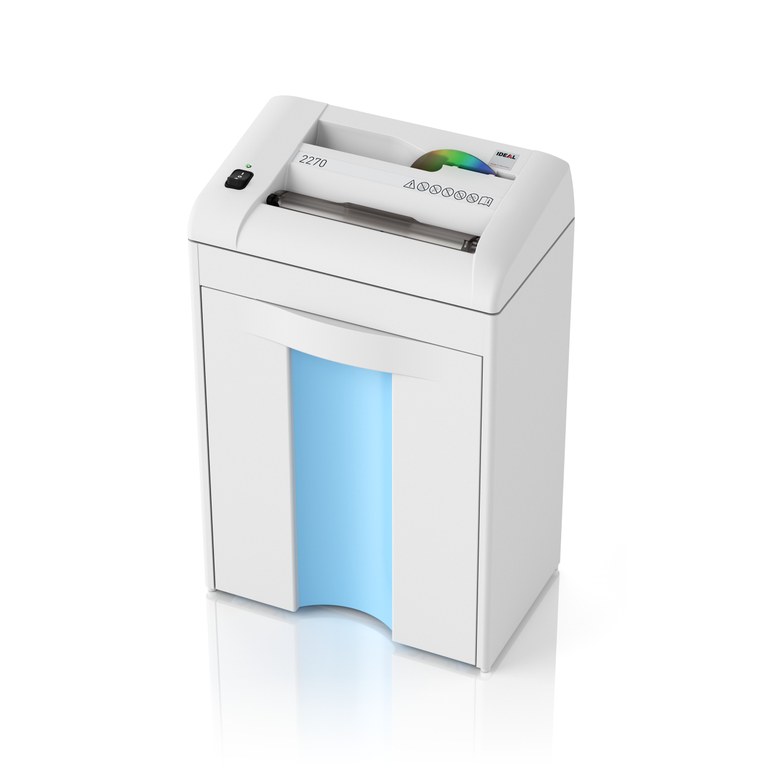 Aktenvernichter Crosscut 2x15mm (P-5), 22 cm Schnittbreite, 3-4 Blätter 80g/m², 150-Watt-Wechselstrommotor, zwei Schnittwerke: 2x15 mm für Papier und eins für CDs/DVDs, Mehrfunktionsschalter für Stand-by / Stopp (Aus) / Rückwärtslauf, Betriebsanzeige, Eingriffsschutz in der Zuführung, herausnehmbarer Schnittgutbehälter mit Sichtfenster als Füllstandsanzeige, 20l Volumen für Papier / 3l für CDs/DVDs, Made in Germany - Abverkaufspreis!