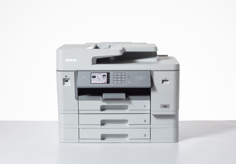A3-MFP Farbe, Tinte, 4in1, 50-Blatt-Duplex-ADF, 3x250-Blatt-Kassette und 100-Blatt-Universalmagazin, bis 30 Seiten / Minute, 8.8 cm Touchscreen, Starttinte für ca. 2.250 SW- / 975 Farbseiten, USB / LAN / WLAN, 3 Jahre vor-Ort-Garantie und 15.000-Seiten-PrintAirbag